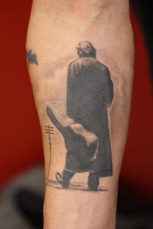 Johnny Cash black & grey Tattoo done at The Compass Rose Custom Tattoo’s in Gloucester Ma. Done By Matt Maguire